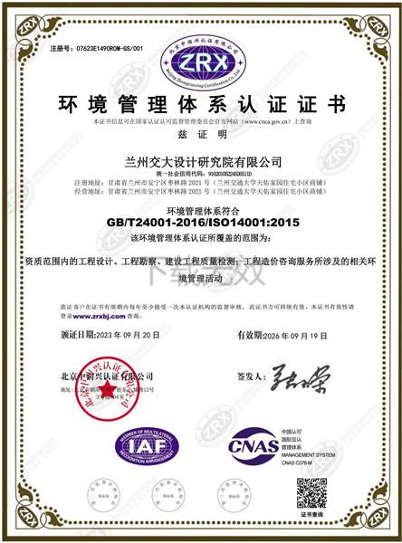 環(huán)境管理體系認(rèn)證證書