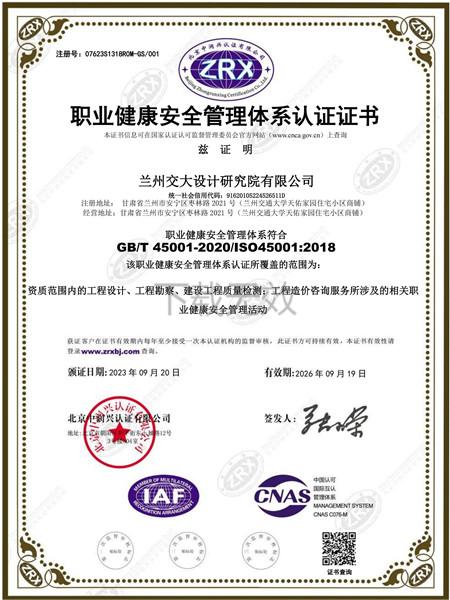 職業(yè)健康安全管理體系認(rèn)證證書