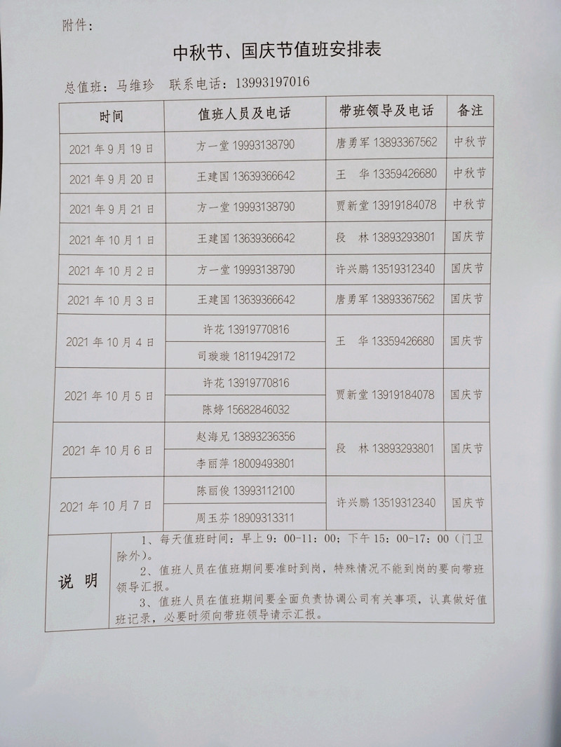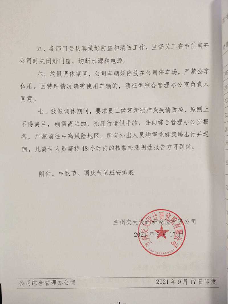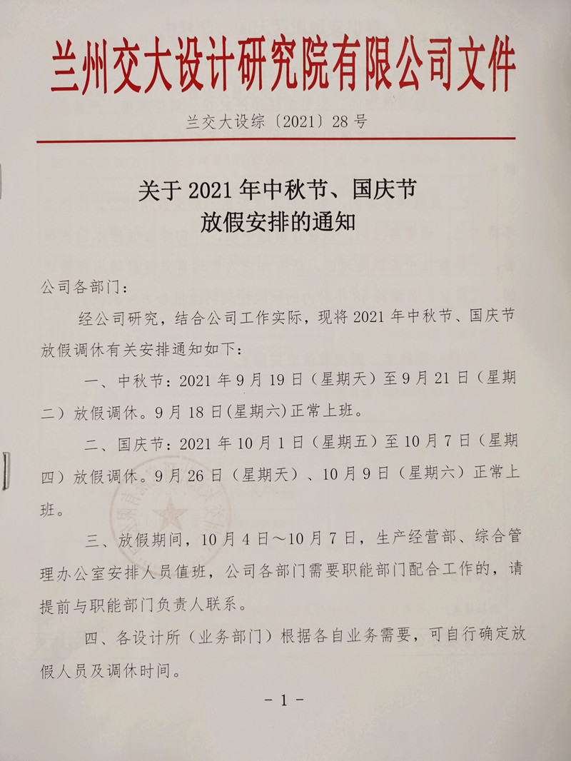 關(guān)于2021年中秋節(jié)、國慶節(jié)放假安排的通知